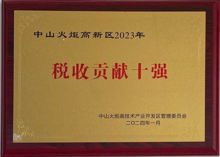 中山火炬高新区2023年税收贡献十强