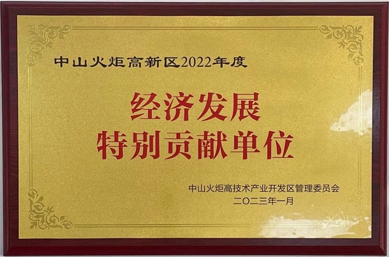 中山火炬高新区2022年度经济发展特别贡献单位