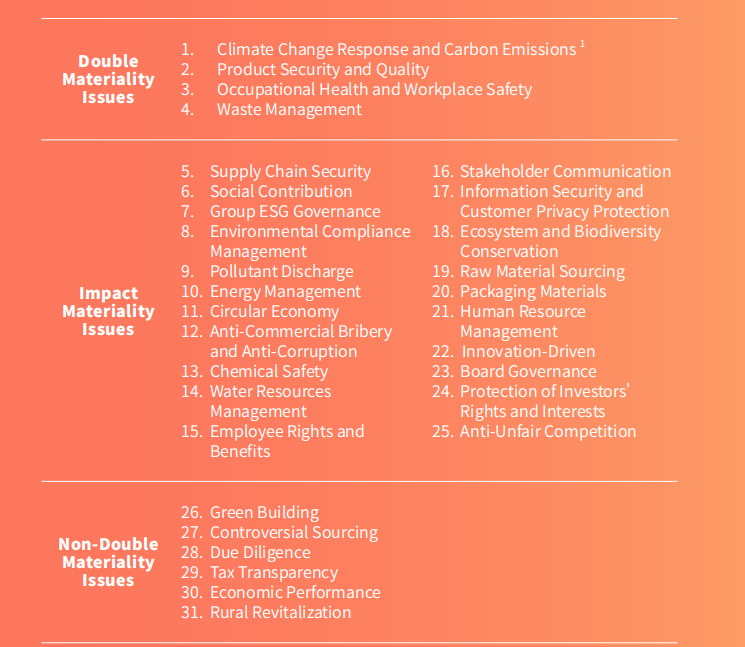 Huali Group’s 2024 Material Issues List