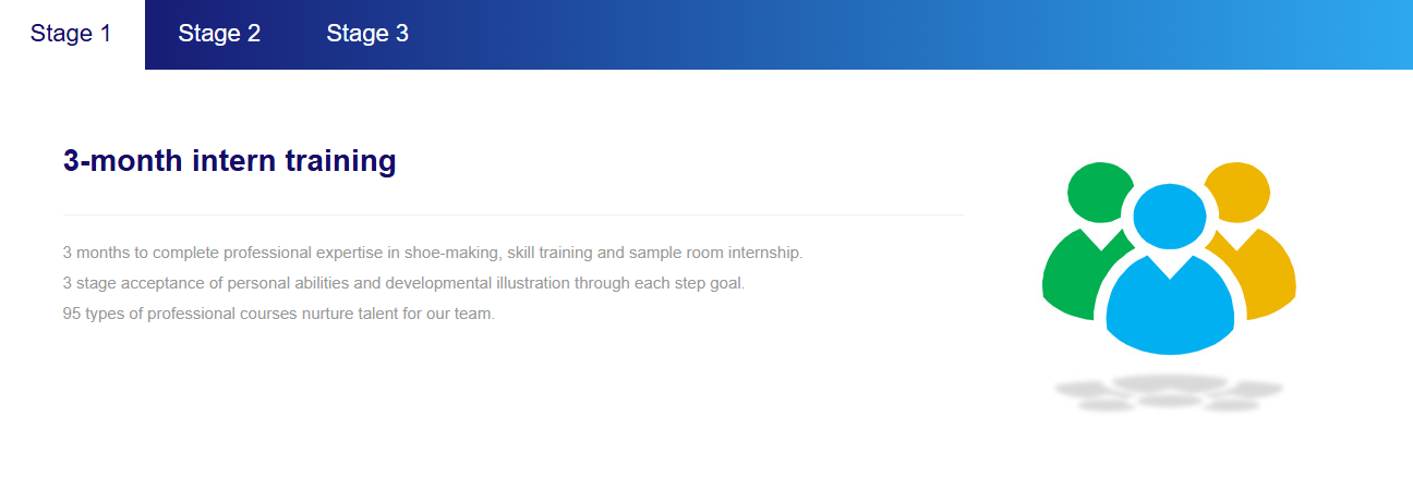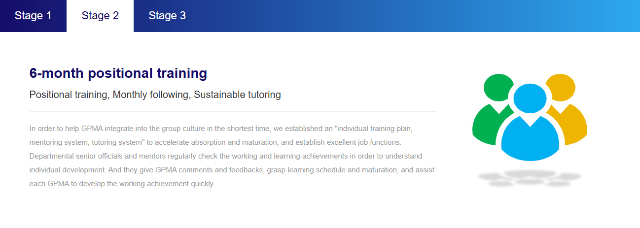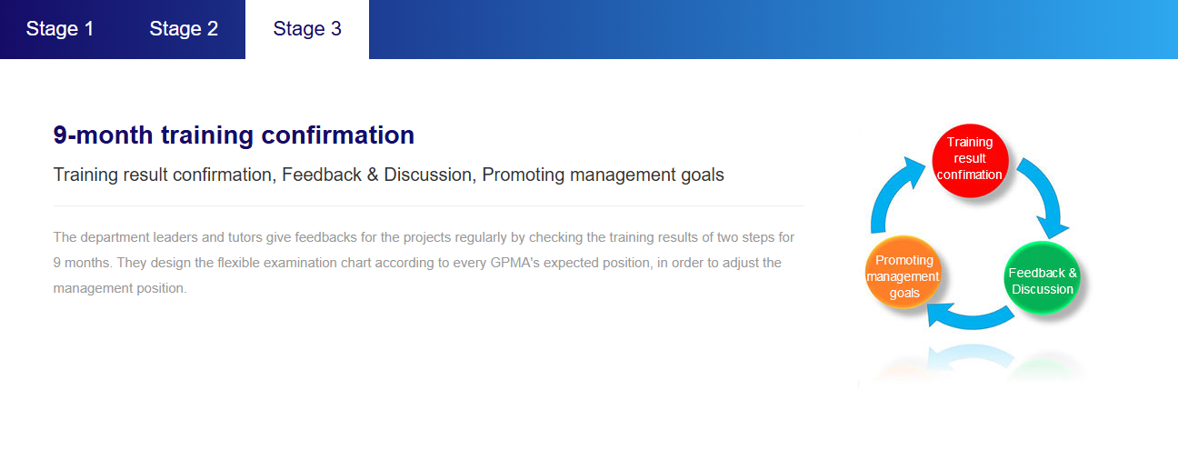 GPMA (Group Management Associates)Training Plan aims to nurture the Group’s management talent.It is expected to strengthen profession and management abilities through intensively and practically fundamental training, footwear technology imparting primary management courses. Those who complete the training plan and pass the assessment not only have the professional functions of the footwear industry but also prepare for joining in the management team in the future; GPMA Training Plan is being developed sustainably in China and Vietnam.