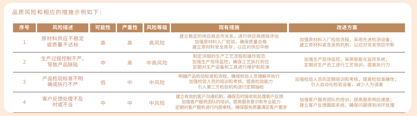 2024年集团品质风险和相应措施: