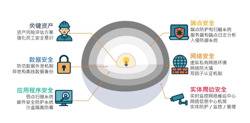 我们从资产、数据、系统、网络到周边环境建构了多层次的防御机制,并建立了信息安全事件回报及响应平台,以及信息安全管理政策。我们建立MDR/EDR的端点防护和扫毒系统,对于所有服务器、工作站、个人电脑、笔记本等资产提供防保护;此外,我们还定期邀请外部信息安全专业厂商,对我们进行第三方渗透测试,确保应用系统和网络环境的安全,不断提升网络安全水平。