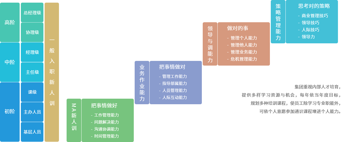集团储备干部(GPMA)培训计划,拥有完整的培训制度,共分 三阶段培训:3个月、6个月、9个月的扎实培训,在一年半期间内厚植专业根基、累积实务经验。